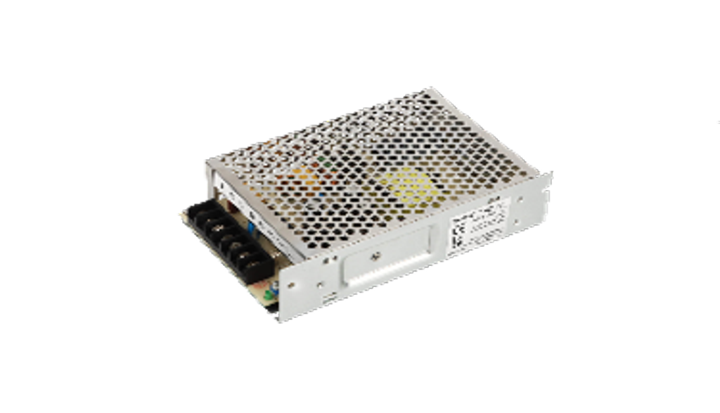 Alimentatore in contenitore metallico a griglia, Security&UPS, tensione ingresso da 110 a 240 Vca e da 124 a 370 Vcc, tensione di uscita 1: 13,8 Vcc, 3,5A, uscita 2: 13,4 Vcc, 0,23A. Segnalazioni sovraccarico/tensione elevata/corto circuito/batteria bassa/protezione polarità batteria. Conforme CE, EMC, ROHS, REACH, UKCA. Dimensioni in millimetri: 97 x 159 x 38.